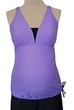 | This tankini top has it all: adjustable straps, a soft cup bra for support, and best of all our exclusive drawstring bottom that allows you to determine the fit. The adjustable straps can be worn straight or criss cross. The drawstring bottom ensures that your top won't float up when you're in the water. This tankini top looks and feels great in all 3 trimesters and post-partum! Choose a coordinating Mermaid Maternity swim skirt, swim short, or swim brief (each sold separately) to create a maternity swimsuit you'll love wearing. 80% nylon, 20% spandex. Hand wash. Air dry. Made in USA of imported fabric. To select your size: Generally, you should order your pre-pregnancy size. Pre-pregnancy size 4-6 is size small, 8-10 is medium, 12-14 is large, 16-18 is XL, and 18-20 is XXL. Also, consider your current bra cup size and bust measurement (measuring around the fullest part of your bust). Our size small best accommodates a bust measurement of 35-37 inches and a cup size of A-C. For medium, bust is 38-40 inches and cup B-D. For large, bust is 41-43 inches and cup C-DD/E. For XL bust is 44-46 inches and cup D-DDD/F. For XXL, bust is 47-49 inches and cup DD/E-G. If you have specific fit questions feel free to contact us ...Read