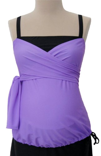 | This tankini top features 2 long ties that wrap around the bandeau bust and then tie at the side. This elegant yet functional top works beautifully for a variety of body types. It has an interior soft cup shelf bra for support, plus adjustable straps. The drawstring hem allows you to determine the fit, and it also ensures that your top won't float up when you're in the water. This tankini top looks and feels great in all 3 trimesters and post-partum! Choose a coordinating Mermaid Maternity swim skirt, swim short, or swim brief (each sold separately) to create a maternity swimsuit you'll love wearing. Fabric is 80% nylon, 20% spandex. Hand wash. Air dry. Made in USA of imported fabric. To select your size: Generally, you should order your pre-pregnancy size. Pre-pregnancy size 4-6 is size small, 8-10 is medium, 12-14 is large, 16-18 is XL, and 18-20 is XXL. Also, consider your current bra cup size and bust measurement (measuring around the fullest part of your bust). Our size small best accommodates a bust measurement of 35-37 inches and a cup size of A-C. For medium, bust is 38-40 inches and cup B-D. For large, bust is 41-43 inches and cup C-DD/E. For XL bust is 44-46 inches and cup D-DDD/F. For XXL, bust is 47-49 inches and cup DD/E-G. If you have specific fit questions feel free to contact us ...Read